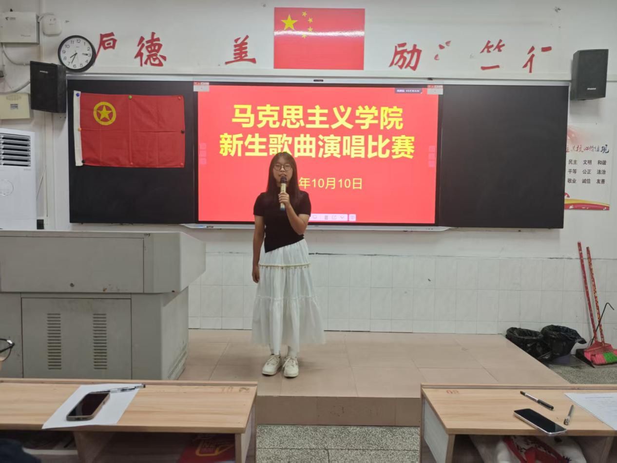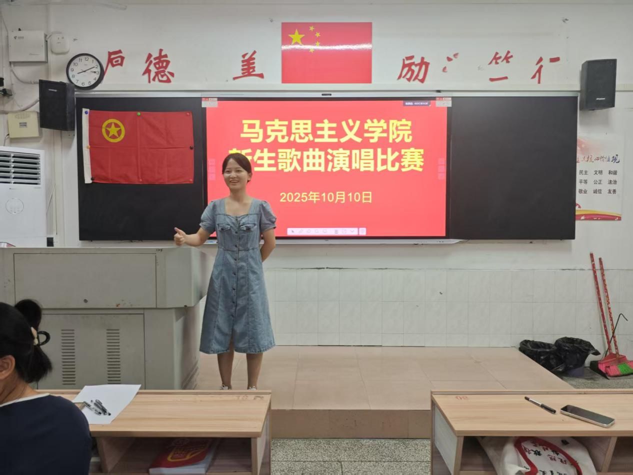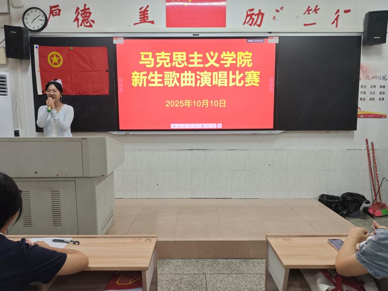 为营造积极向上的学院文化氛围,助力学生在艺术实践中提升综合素养、展现自我风采,我院于10月10日晚上在跬步楼1103举行红色歌曲演唱比赛。本次活动由马克思主义学院团委学生会组织举行,2025级新生班主任刘瑾莅临指导,我院2025级全体同学到场参加。