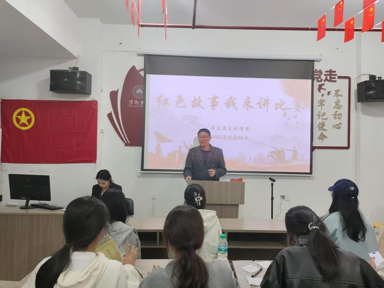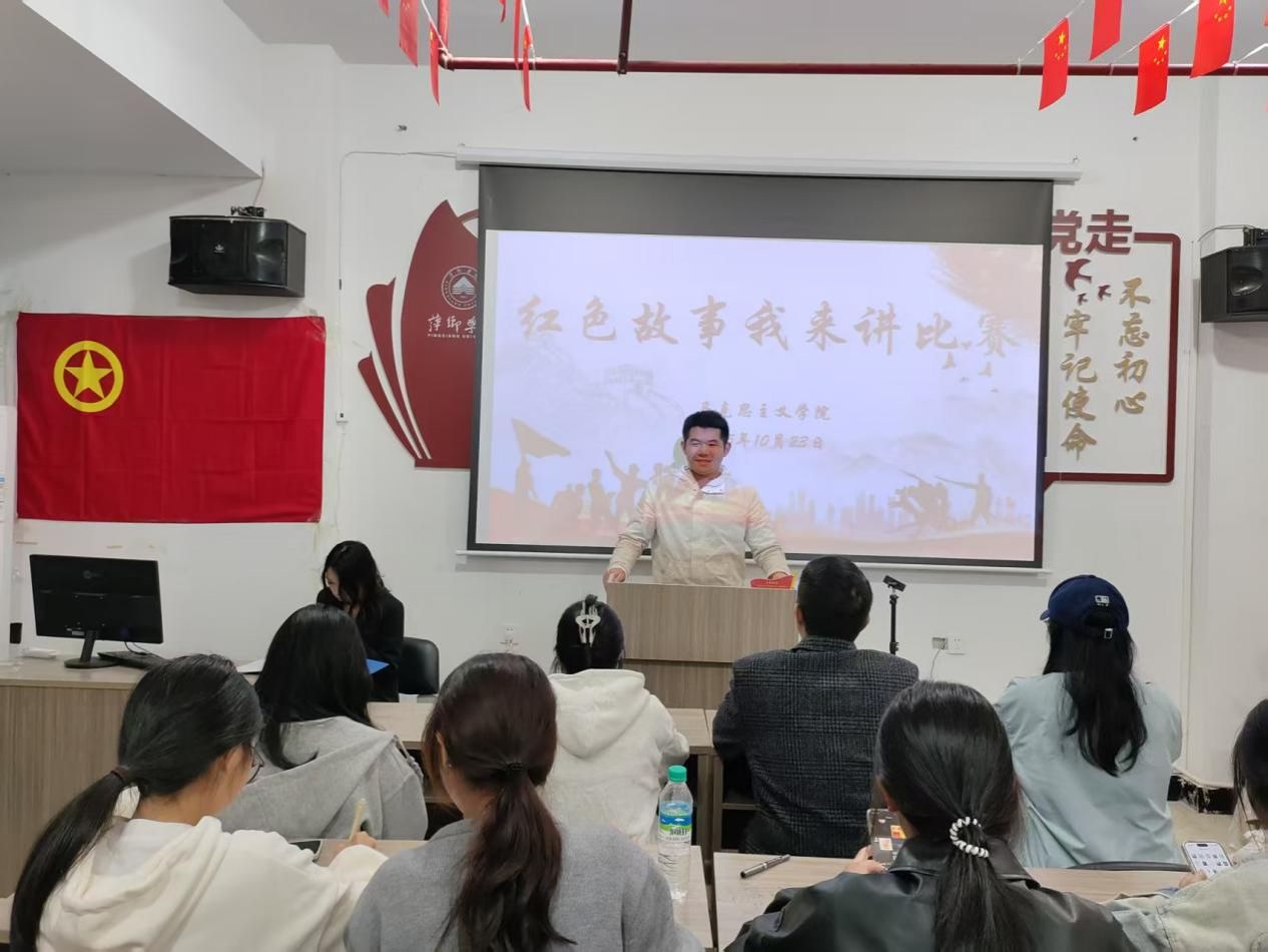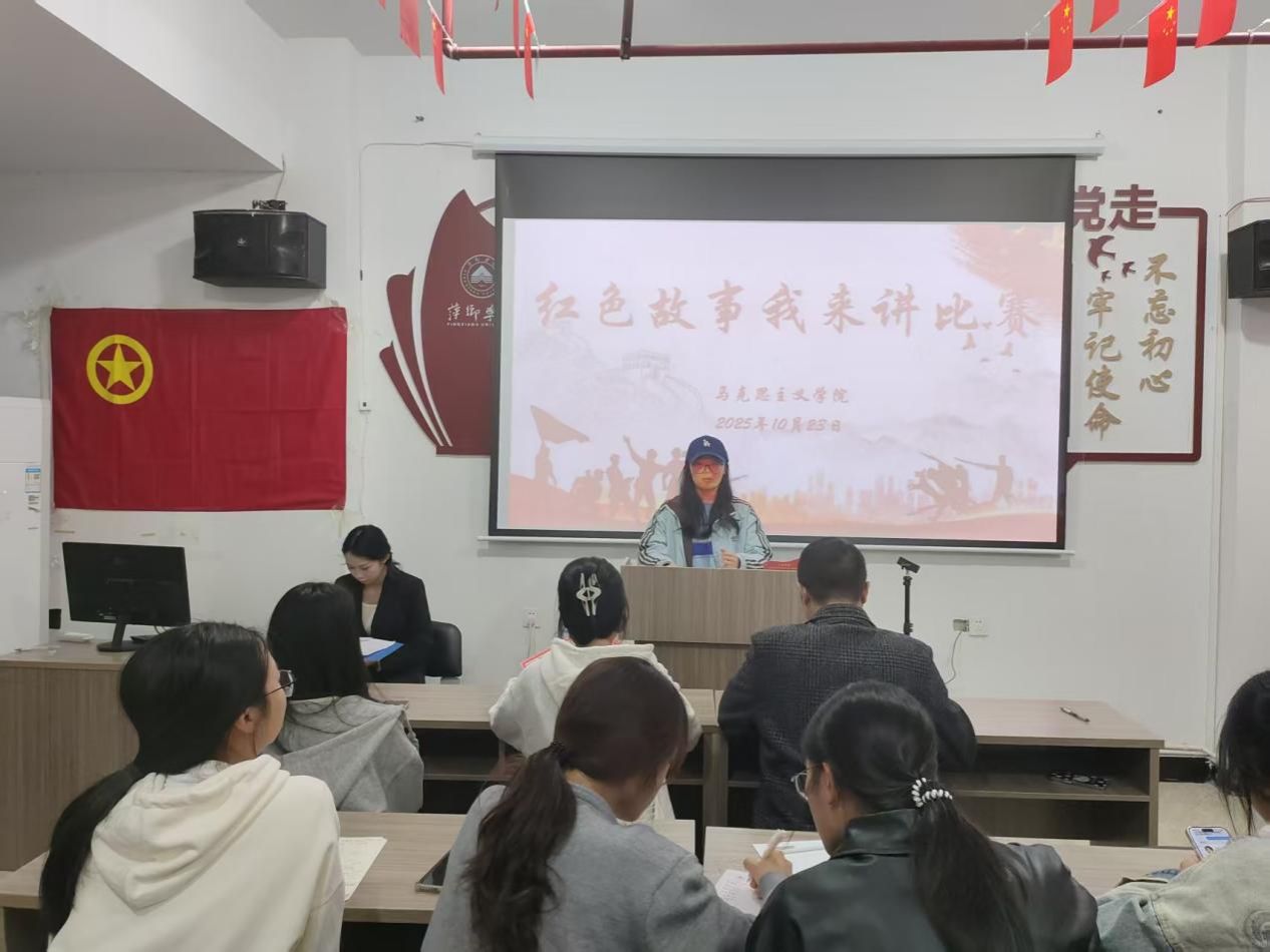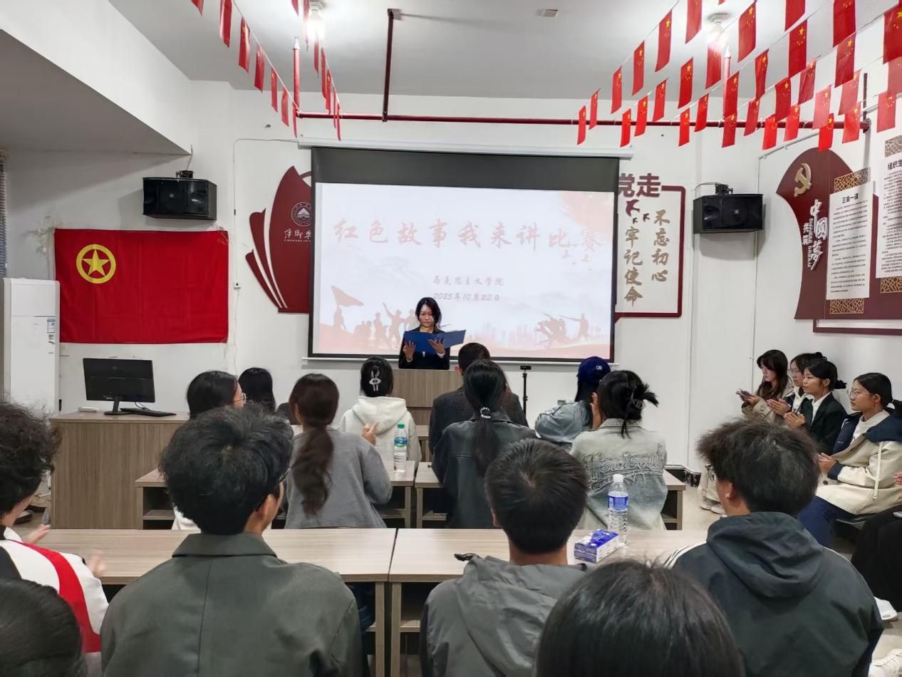 为传承红色基因,厚植家国情怀,凝聚奋进力量,我院于10月23日晚七点在18栋“红管家”一站式学生社区举行“红色故事我来讲”演讲比赛,本次活动由马克思主义学院团委学生会组织举行,学工科科长、团委书记陈尧嘉、23思政俞畅、24思政冯丽霞担任此次比赛评委,我院2025级同学到场参加。