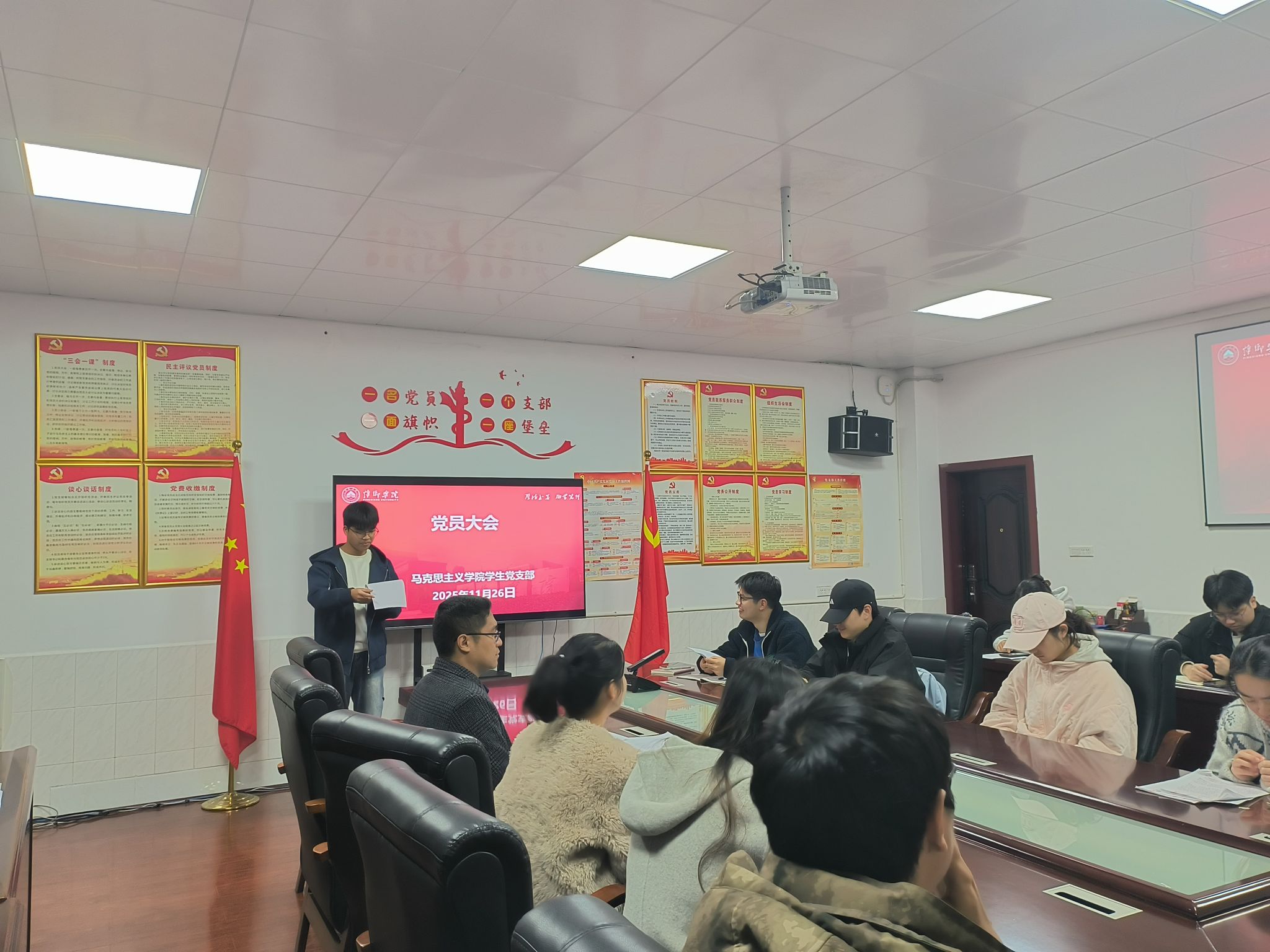 为严格规范党员发展程序、优化党员队伍结构、提升党员队伍整体素质,进一步增强党组织的创造力、凝聚力与战斗力,11月26日,马克思主义学院学生党支部2025年下半年党员发展大会在学院会议室召开。学生党支部全体师生党员参会,会议由学生党支部书记陈尧嘉主持。