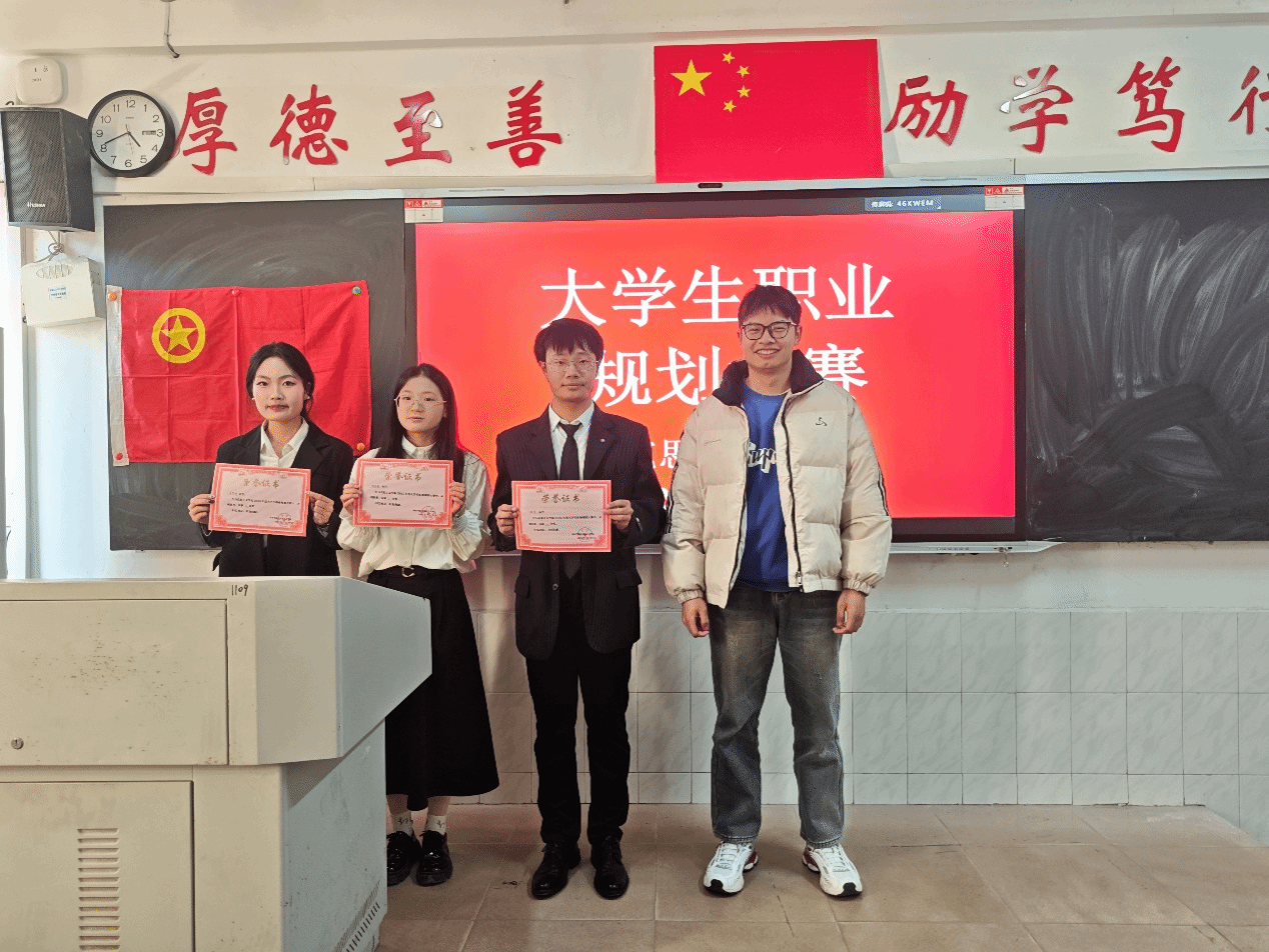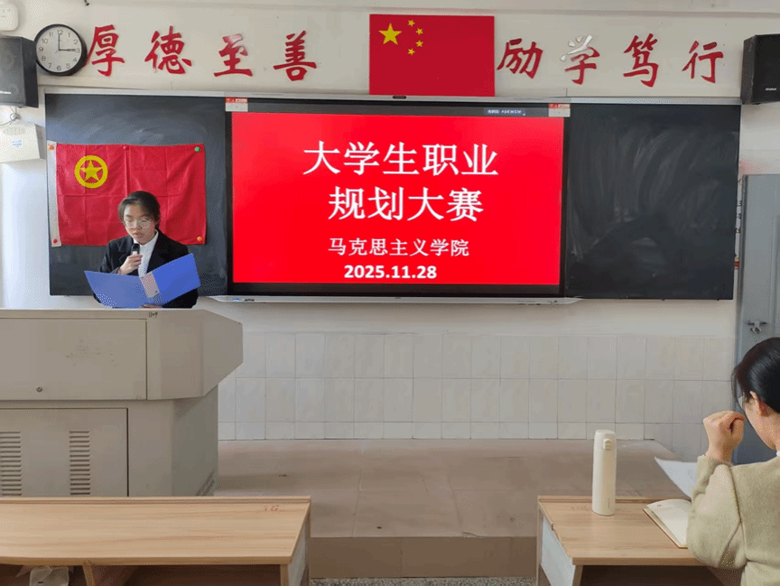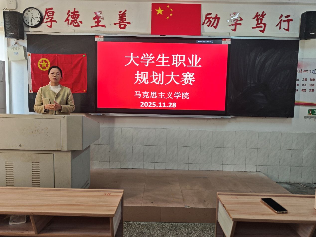为帮助我院学生树立清晰的职业发展目标,夯实职业规划理论与实践基础,提升职业发展能力。马克思主义学院于11月28日下午在跬步楼1109举办2025年度大学生职业规划大赛。本次活动由马克思主义学院教师邝盼娣以及主席团成员夏天和王宇担任评委。