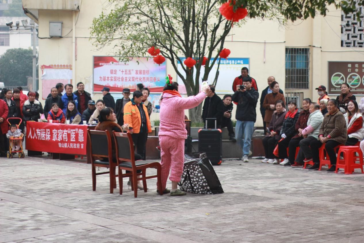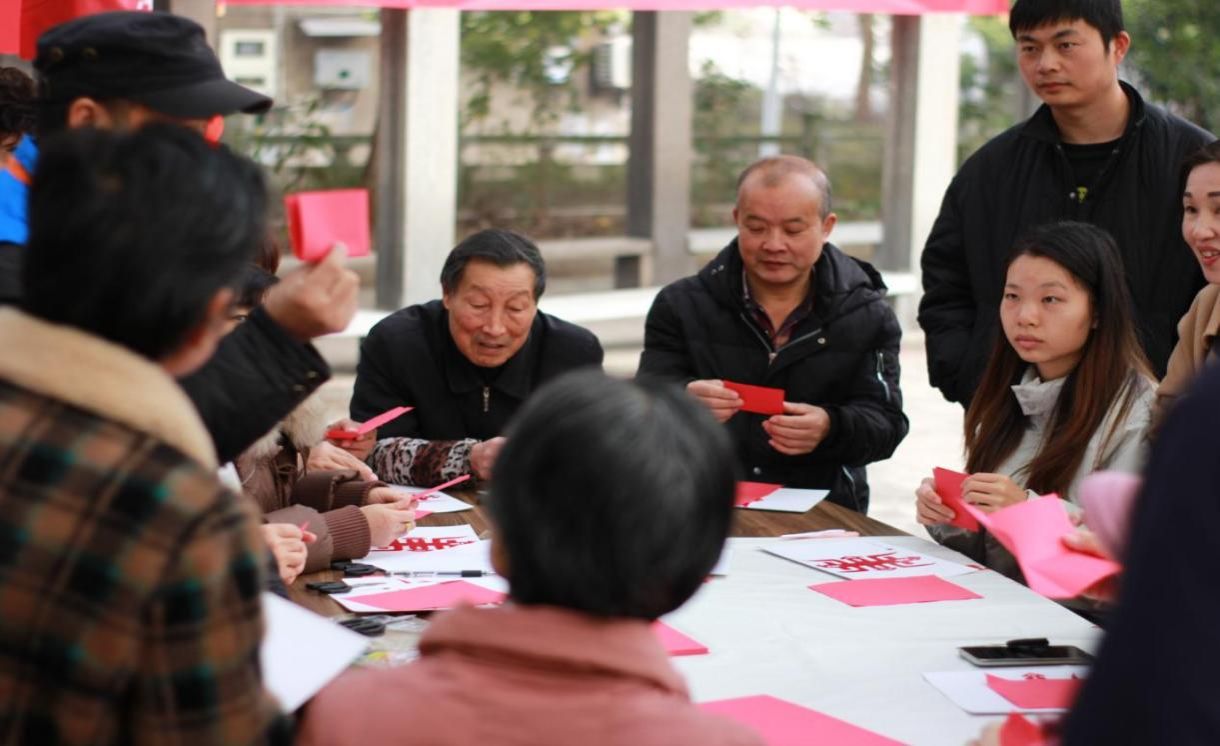 作为活动主办方,青山镇新时代文明实践所始终秉持“惠民、利民、便民”的核心宗旨,精心搭建多元服务平台,让民生服务的温度与文化活动的热度相互交融、相得益彰。在套圈游戏区里,居民们手持圈环瞄准心仪目标,阵阵欢笑声此起彼伏,邻里间的情谊在轻松愉快的互动中悄然升温;在非遗剪纸体验区中,省级“四个100”文化导师唐柏林开展现场授课,从基础纹样到复杂图案耐心指导,手把手带领大家感受中华优秀传统文化的独特魅力,一张张红纸在指尖灵巧流转,最终化作承载着新年美好祝福的精美艺术品。此外,现场还设有医保社保、养老服务、就业帮扶、法律援助等民生政策宣传专区,镇干部与党员志愿者化身“政策讲解员”,耐心细致地解答群众疑问,发放政策宣传单与图解手册,真正将惠民政策精准送到群众“家门口”。