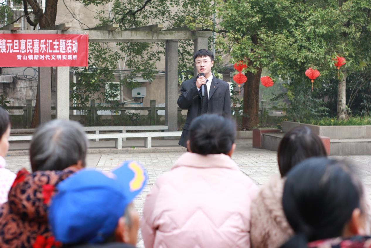 为深入学习贯彻党的二十届四中全会精神,推动理论宣讲与群众生活深度融合,12月30日上午,萍乡学院“安源红”大学生宣讲团携手青山镇周五移动课堂宣讲团,走进青山镇综合社区小广场,开展“全会精神润青山、网格服务暖民心”元旦惠民喜乐汇主题活动。活动以红色宣讲、文艺展演等丰富形式开展,为基层群众送上了一场兼具思想深度与情感感染力的文化盛宴。
