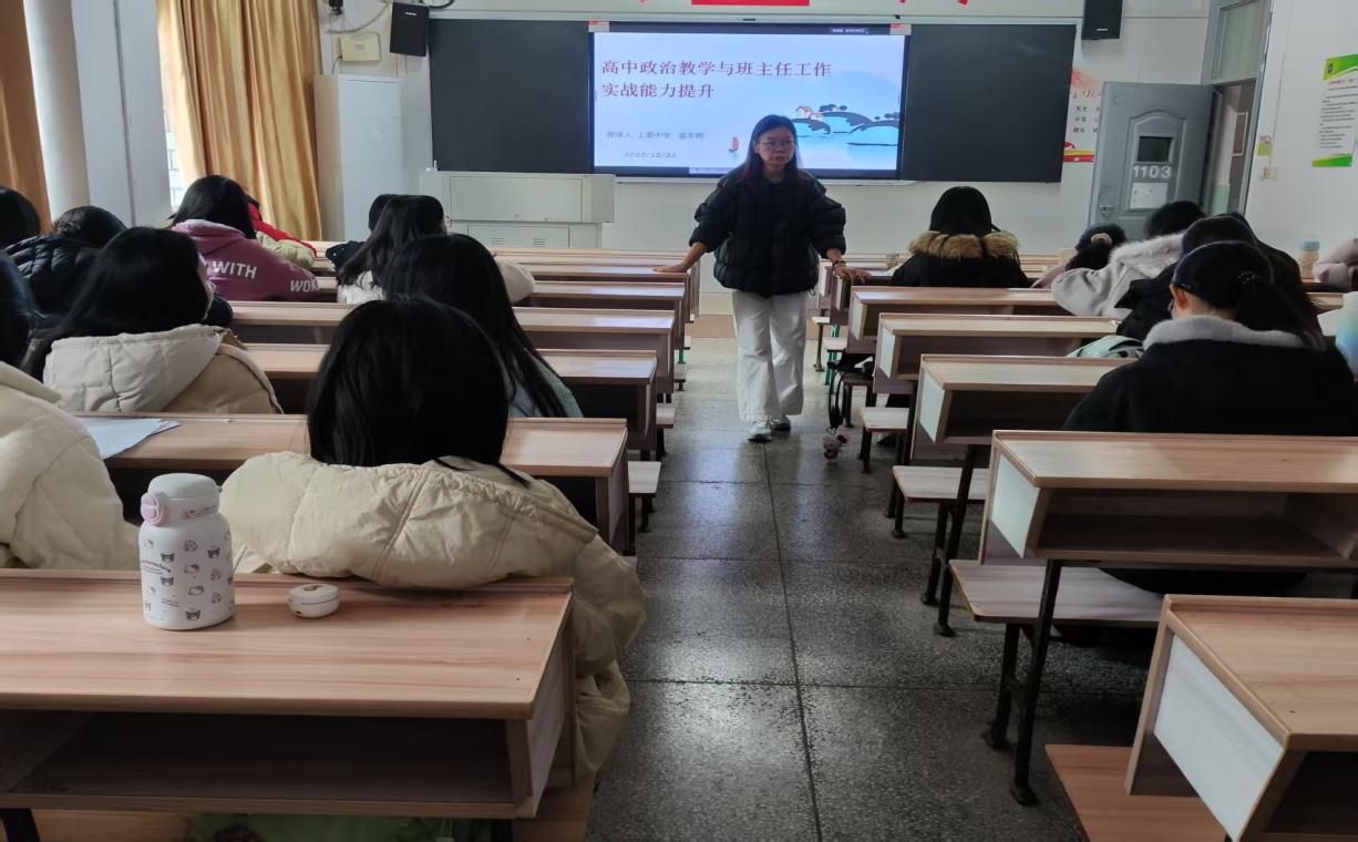 夏冬梅老师以《高中政治教学与班主任工作实战能力提升》为题,开启系列第二讲。她巧妙融合学科教学与班级管理两大主线,分享了在高中政治教师与班主任双重角色下的宝贵经验。讲座中,夏老师通过大量真实、生动的案例,详细阐述了如何将思政教育有机融入班级日常管理、主题活动及师生沟通之中,实现知识传授、价值引领与人格塑造的协同并进。她重点讲解了应对常见班级管理难题的策略、构建良好家校关系的方法,以及如何在繁重工作中实现自我调适与能力升华,为同学们全景式展现了新时代思政课教师所需的综合育人图景。