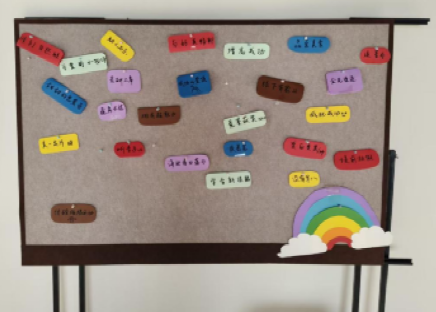 活动现场,展板上贴满了写在卡纸上的各种暖心小事,每一张卡片都承载着平凡生活中的温暖点滴。“快乐织网计划”以独特的互动形式,邀请同学们在展板上挑选一件让自己开心的小事,系下第一个绳结,再用彩色毛线缠绕所有心生愉悦的温情瞬间。在毛线的缠绕与交织中,那些被忽略的小美好慢慢浮现,抽象的幸福被具象化为一束束“快乐毛线”。同学们亲手剪断毛线带走这份专属幸福,在动手实践中学会发现生活中的温柔与光亮,有效缓解了学业压力与心理焦虑。
