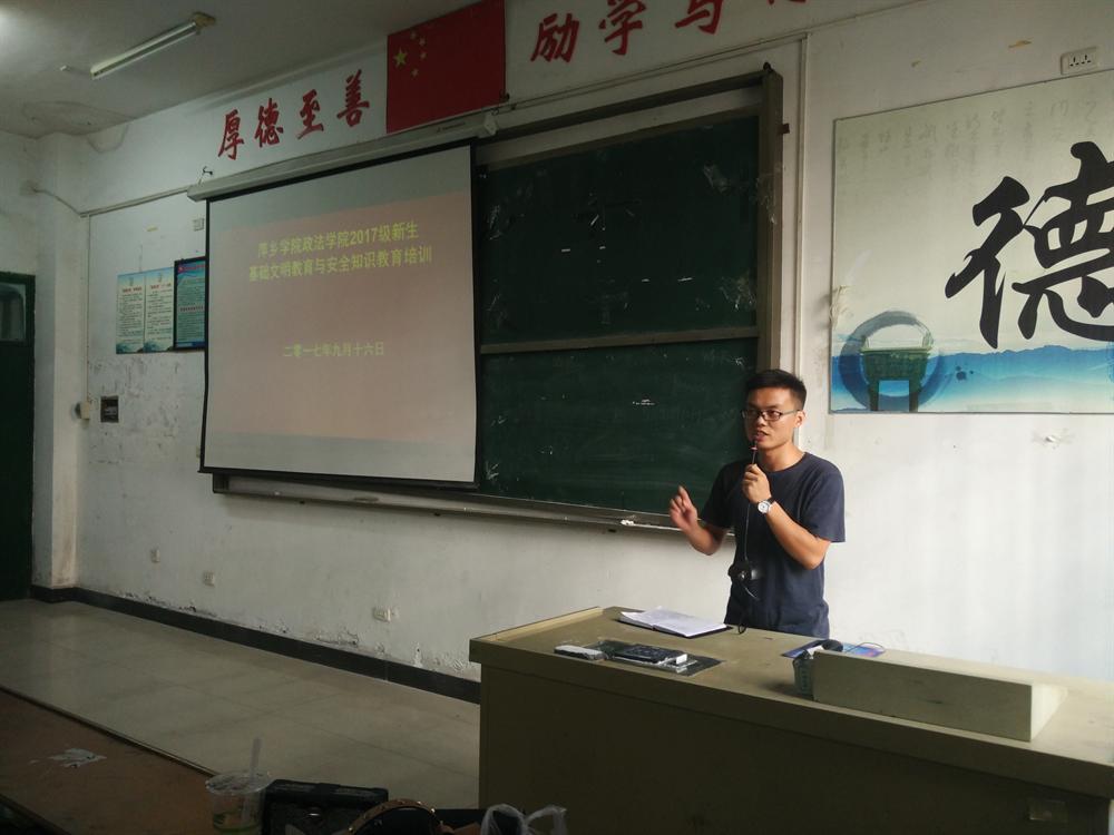 为提升2017级新生的文明素养,建设文明校园,9月16日,政法学院军训32排在英华楼3112教室举行基础文明教育讲座。讲座由32排排长阳水根老师主讲,政法学院主要学生干部出席。