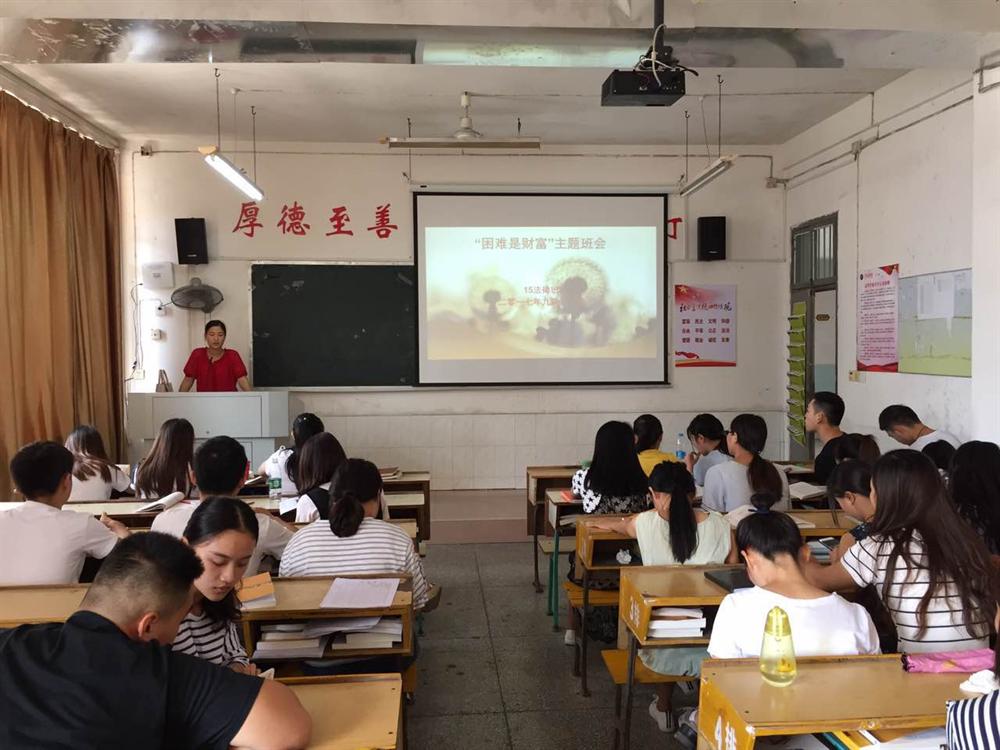 为引导广大学生正确认识挫折和困难,掌握克服困难的办法,分享战胜困难的收获,增强心理承受能力。9月18日,15法律班召开了“困难是财富”主题班会,班主任带领学生讨论分析当前学习生活中存在的困难和战胜困难的办法。