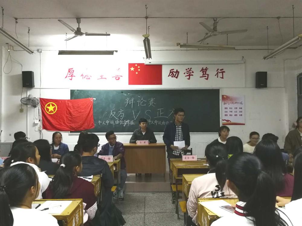 2017年10月16日晚,跬步楼1104教室座无虚席,17思政班全体同学和受邀的其他班级同学正在观看激烈的辩论赛。辩论赛由政法学院学生会组织,15、16级优秀辩手担任评委。他们就个人命运由社会决定还是由个人决定、青春偶像崇拜利大于弊还是弊大于利等辩题,展开激烈的交锋;经过前期精心准备,虽然很多人是第一次接触辩论,对辩论规则不太熟悉,但在辩场上,每个人都发挥出了自己的实力、展现了自我的特点。最后,由辅导员阳水根老师进行点评。