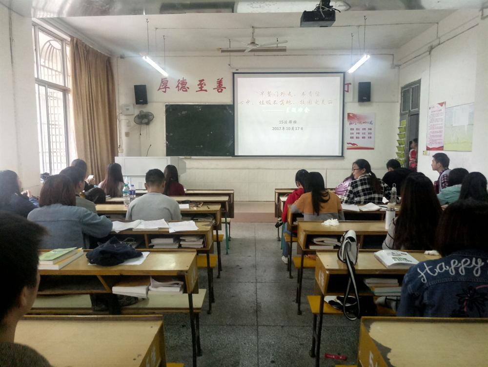 为了提高同学们的环保意识,建设美丽校园,10月17日晚,15法律班“早餐门外走,书香心中留,垃圾不落地,校园更美丽”主题班会在跬步楼1109教室召开。班会由班主任邹甜主持。