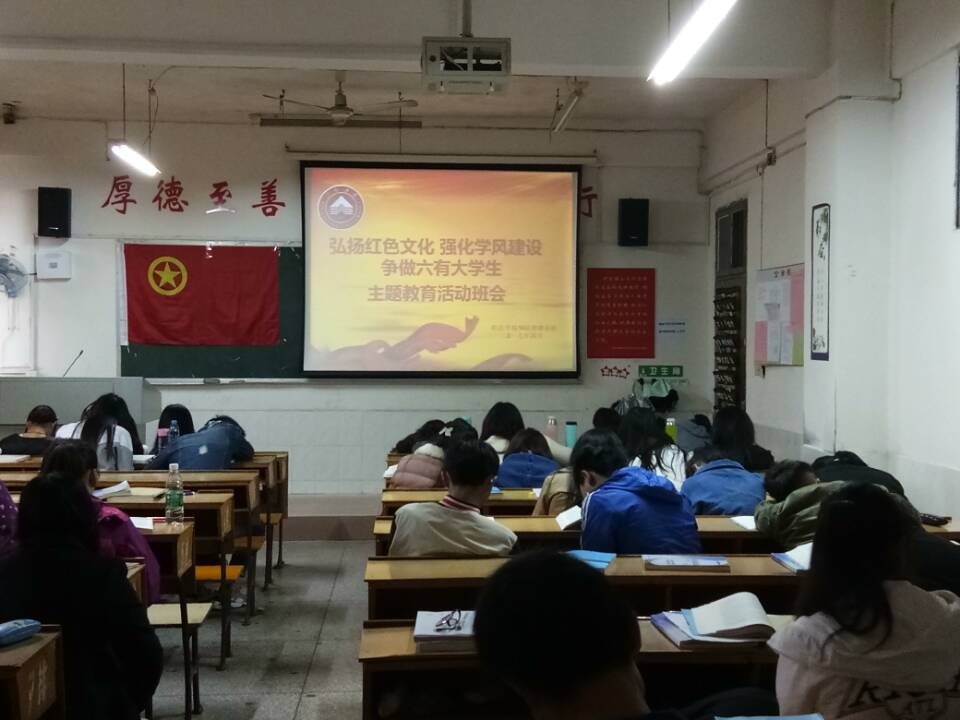 为进一步抓好我院的学风建设,增强广大学生的文化自信,2017年4月13日,政法学院16法律班召开了“弘扬红色文化、强化学风建设、争做六有大学生”主题教育班会。班主任陈冉老师主持了此次班会。