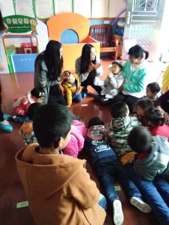 上课伊始复习了“红绿灯红灯停绿灯行”的交通知识,然后就是讲文明的内容,由一名同学在上面通过肢体语言描述出,不能踩小草小花,要学会说谢谢对不起,你好,然后是,讲到使用文明用语。以及不能乱扔垃圾,走路要靠右行,不能随意插队等的文明小知识。接着就是游戏环节。首先志愿者带着小朋友,学会如何排队,不能插队一个接一个的,在那里走。接下来就是跟大家围成一个圈,在圈里面站两个人,如果是老师起来的话就说老师好,如果是志愿者起来的话就说,姐姐好。通过这个游戏巩固了小朋友们见到人要问好及多开口说话的目的。接着我们就教小朋友拍手掌的游戏你拍一我拍一深化志愿者与小朋友之间的友谊。