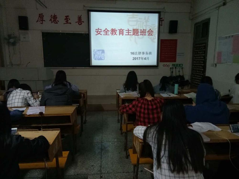 4月26日,16法律召开“安全教育”主题班会。班会内容全面广泛,涉及学生人身安全、交通安全、网络安全、宿舍安全、食品安全、消防安全、财物防盗等等。班主任特别就实习安全、春游、游泳、心理健康、交通安全、网贷等安全问题提出了相关要求。从班会召开过程的热烈反响来看,同学们对待安全问题的思想日趋成熟,纷纷表示会自觉遵守学校规章制度,提升安全意识,重视自我生命价值。