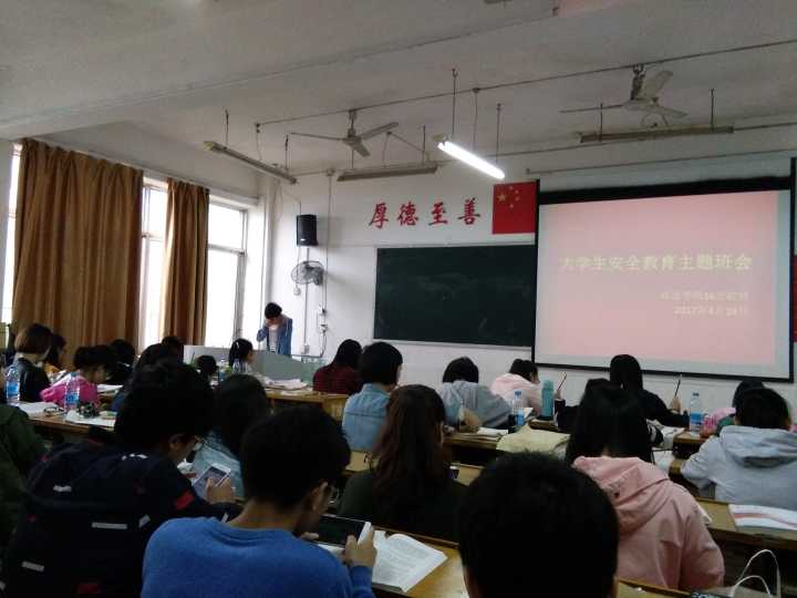 4月26日,16思政召开“安全教育”主题班会。班会内容全面广泛,涉及学生人身安全、交通安全、网络安全、宿舍安全、食品安全、消防安全、财物防盗等等。班主任特别就实习安全、春游、游泳、心理健康、交通安全、网贷等安全问题提出了相关要求。从班会召开过程的热烈反响来看,同学们对待安全问题的思想日趋成熟,纷纷表示会自觉遵守学校规章制度,提升安全意识,重视自我生命价值。