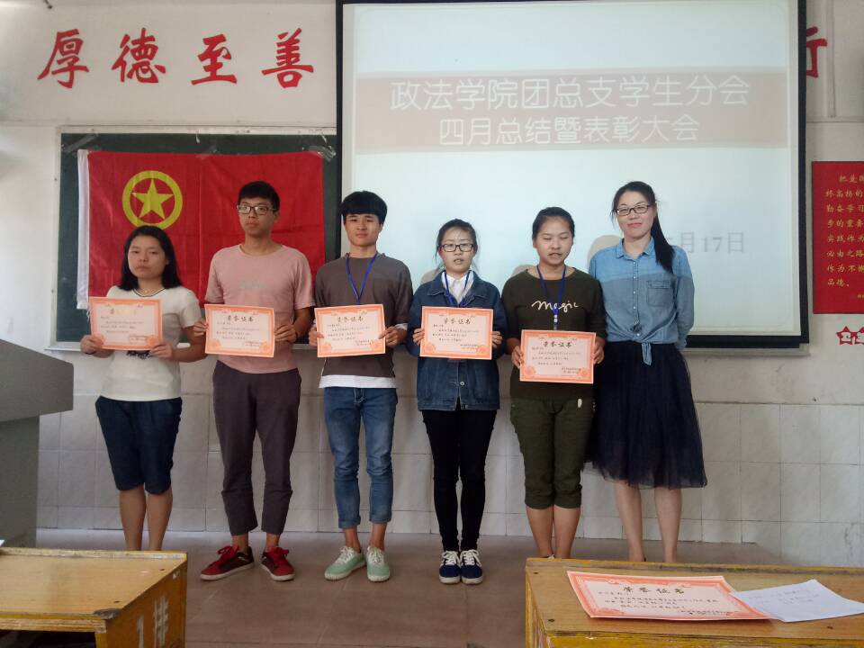 2017年5月17日,政法学院团总支学生分会在跬步楼1109举行了四月工作总结大会。此次大会邀请了政法学院团总支书记罗燕妮老师和16思政班班主任乔兰老师。鈡芬同学担任此次大会主持。