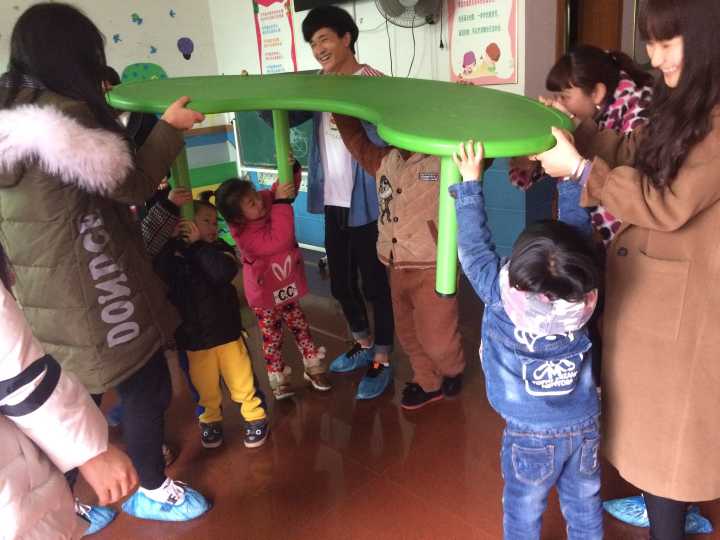 在到达爱心园和孩子短暂的交流之后,由志愿者开始主讲“团结”精神。由于孩子们的特殊原因,讲解和之前一样,多半是通过动作解读。起初请了一位小朋友搬桌子,然后由一位小朋友变成两个三个四个,最终在几个小朋友的合力之下桌子被举起。而这则是达到了初步目标。之后青年志愿者们带领小朋友做了个游戏来他们的认识。游戏内容则是小组传递沙包,由两边小朋友互传沙包,最先传完的为胜出队。在讲解和游戏结束之后,小朋友们都大概了解了团结的意义。