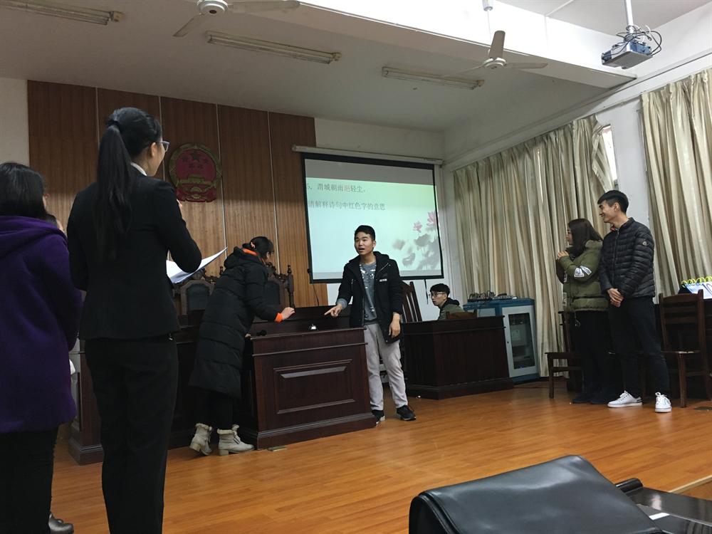 为了弘扬传统文化、普及诗词知识,陶冶学生情操,丰富学生的精神世界。3月30日,政法学院在英华楼模拟法庭举办了诗词大会。政法学院团总支书记罗燕妮老师、办公室主任张辉海老师、16法律班班主任陈冉老师、16思政班班主任乔兰老师、萍乡市诗词协会分会负责人王志伟和严敏以及政法学院全体学生参加了活动,共同观看了这场诗词盛会。