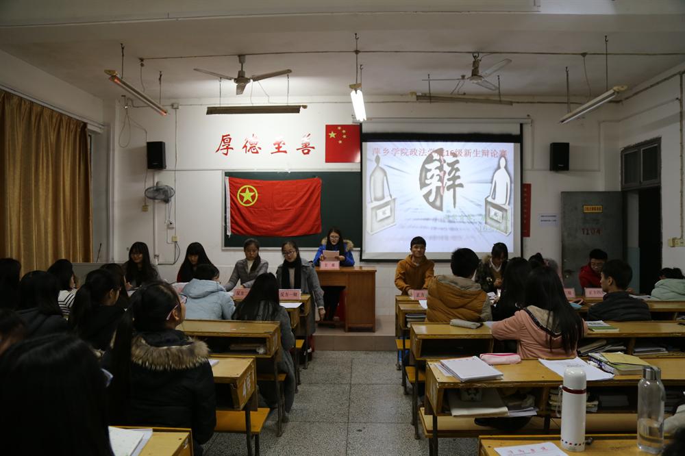 为锻炼政法学生的的语言表达能力和应变能力。2016年11月27日,政法学院新生辩论赛在跬步楼1104教室隆重举行,此次辩论赛吸引了同学们的广泛关注,并邀请政法学院的优秀辩手作为此次的比赛的评委。