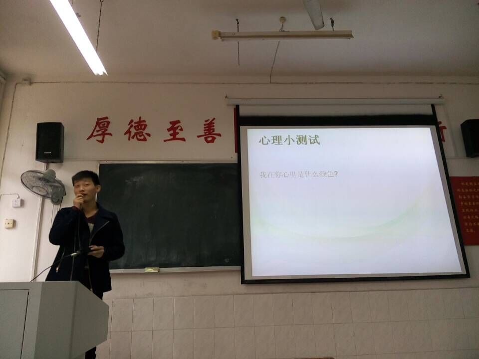 之后,冯永豪带动大家,一起做了几个心理小测试,如在沙漠里渴了,捡到一个空瓶子,你会如何做?如“我在你心里是什么颜色?”等,贴近大家内心的测试活动,使得现场非常活跃,也很好地完成了我们的心理测试。
