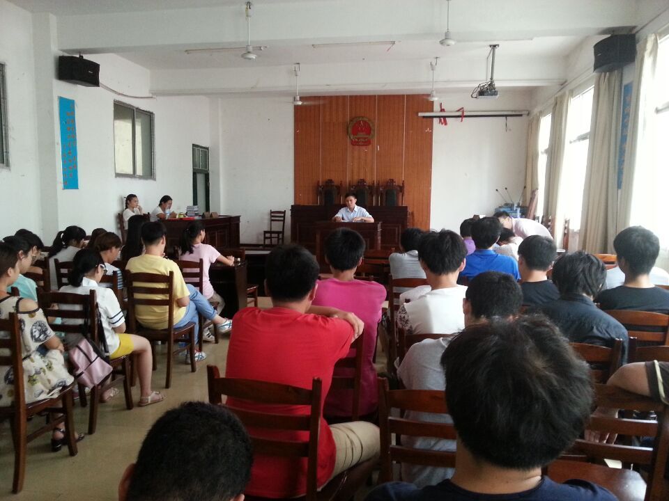 2015年6月16中午,我系在英华楼模拟法庭召开了全体学生大会,系党总支书记叶继林老师、系党总支副书记江惺俊老师、13级法律班班主任陈方前老师、14级法律班班主任张洪峰老师及全体同学参加了大会。会议由系团总支书记张辉海老师主持。