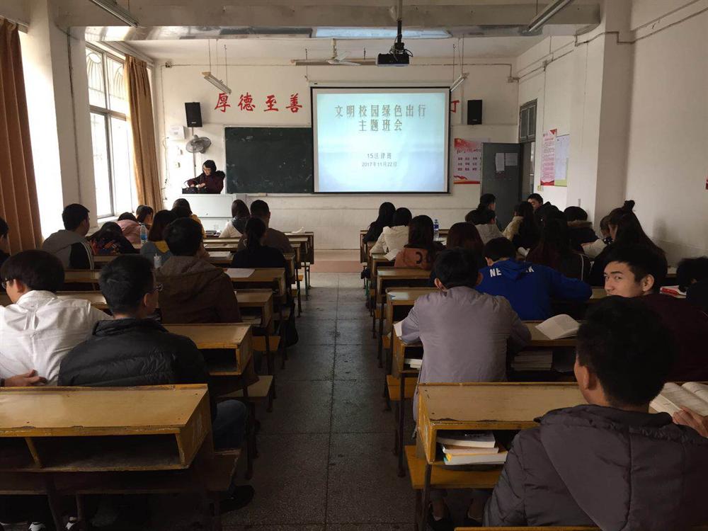 为保障校园安全,提升同学们文明出行的意识,15法律班举行了“文明校园,绿色出行”主题班会。班会由班主任老师主持。