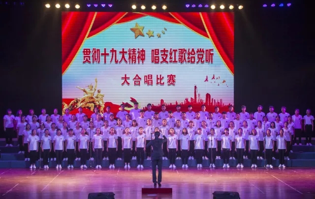 为贯彻落实党的十九大精神,隆重纪念秋收起义、南昌起义、井冈山革命根据地,创建三个90周年,充分展现当代大学生的精神风貌。由萍乡学院学工处、团委主办,萍乡学院学生会承办的“贯彻十九大精神 唱支红歌给党听”大合唱比赛于11月28日晚19:00在音乐厅隆重举办。 舞台上,每个学院的同学们用悠扬的歌声唱出对祖国的热爱。《山崖的红杜鹃》、《保卫黄河》、《我的中国心》、《革命人永远是年轻》、《在灿烂阳光下》等一首首红歌,带领大家去追忆激情燃烧的岁月,唤起人们的红色记忆。