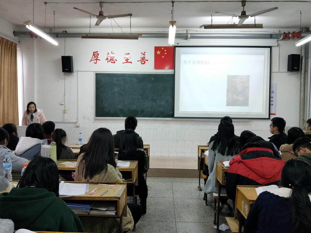 为营造良好的学习环境,提升同学们的环境意识。17法律班于12月月4日下午在跬步楼1108教室,举行了"校园文明”主题班会活动,参加本次班会的有法律班班主任郑老师,以及法律班全体同学,班会由吴子瑶主持。