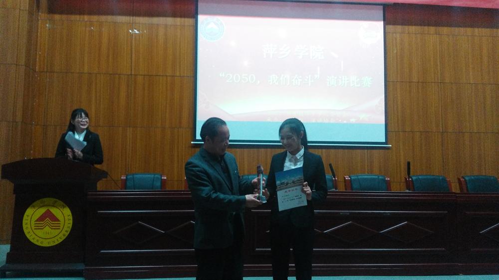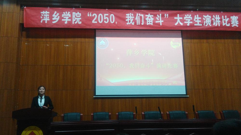 为了深入学习十九大精神,进一步激励作为青年大学生应有的责任和担当,同时加强学校基础文明建设了和丰富同学们的校园文化生活,校社联同演讲协会在12月份集中开展了以“2050 我们奋斗”为主题的演讲比赛,我院推荐选手—16思政班廖玉林经过复赛的精彩比拼,成功入围决赛。12日晚,以“2050 我们奋斗”为主题的演讲比赛决赛在至善楼学术报告厅开展。图书馆馆长刘建明、校团委书记刘德平与各学院学生代表近200人观看比赛。