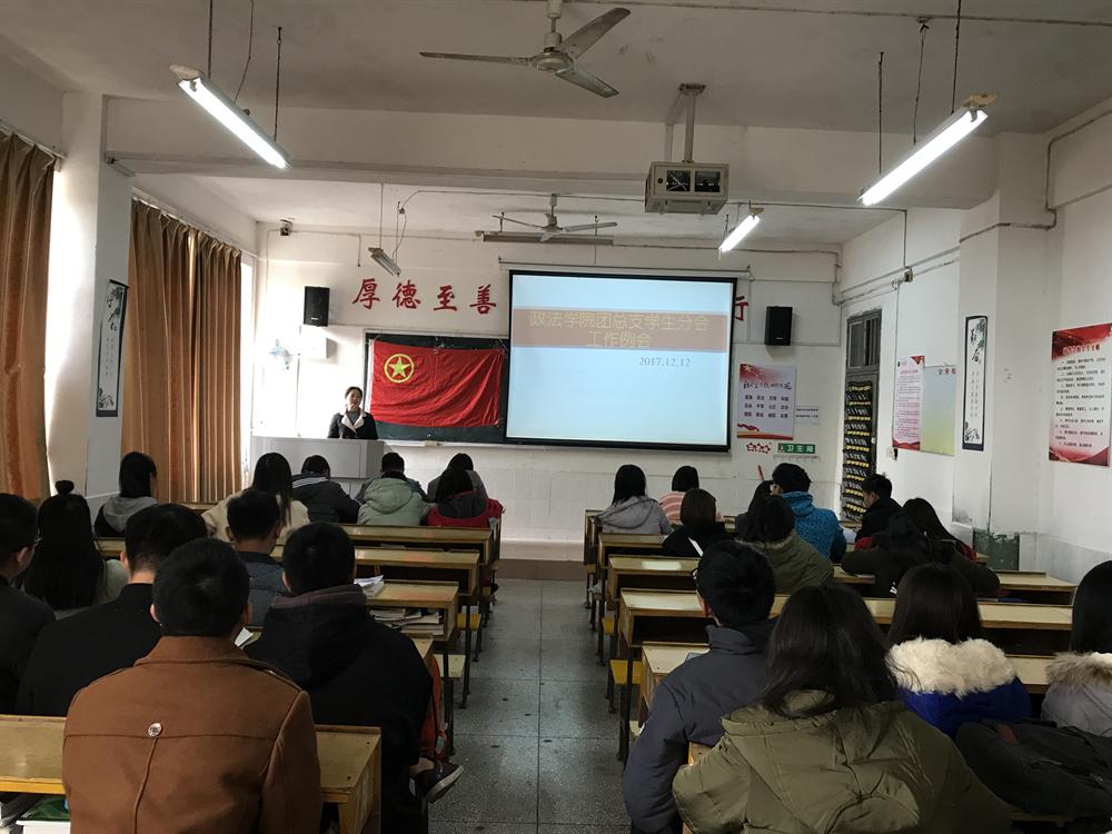 为进一步加强学生分会的工作,2017年12月12日中午,政法学院学生分会于跬步楼1109教室举行了常规例会。出席本次会议的有政法学院团总支书记罗燕妮,系学生会全体成员,由学生会主席康佳主持本次会议。