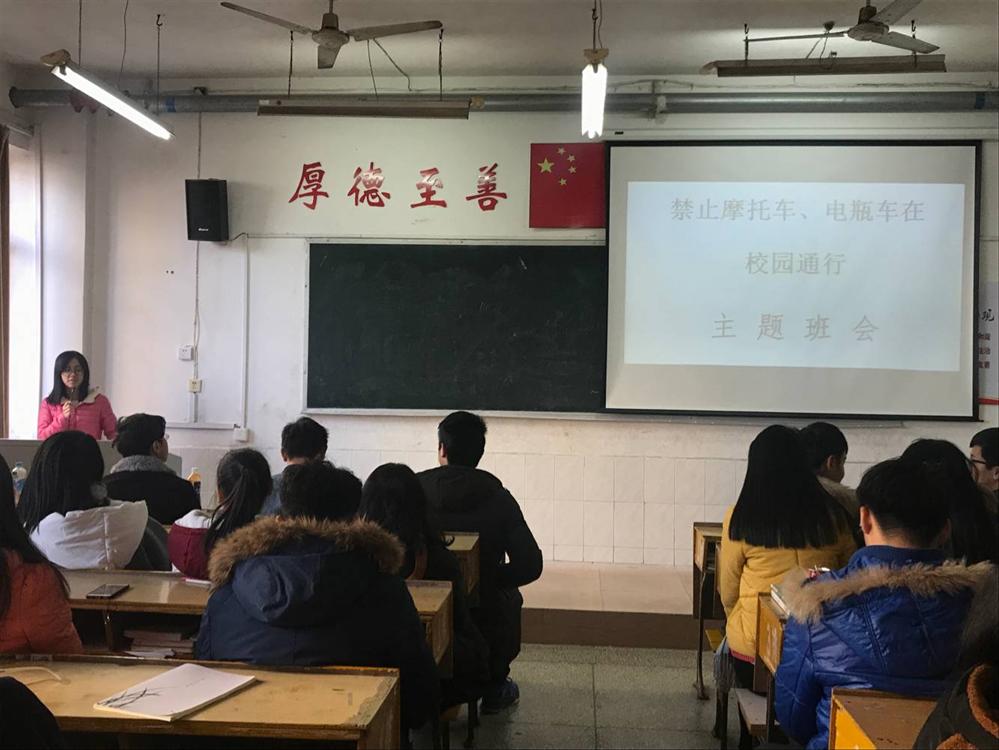 为了贯彻落实学校关于禁止摩托车、电瓶车在全校通行的政策,积极响应号召。17法律班于2018年1月10日在跬步楼1108教室召开了“禁止摩托车、电瓶车在校园通行”的主题班会。17法律班全体同学参加,班会由17法律班班主任郑瑾瑜老师主持。