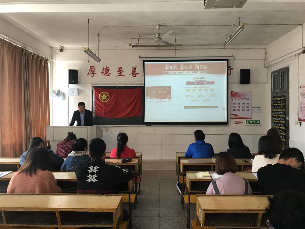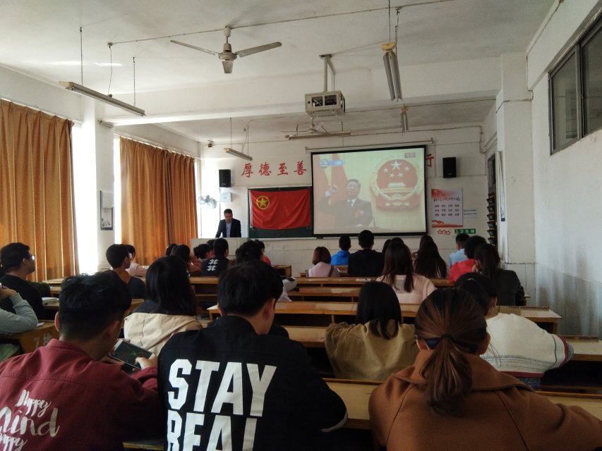 会上,江惺俊书记从三个方面介绍了习近平总书记重要讲话精神。他认为,本次会议会期长、大事多、风气正、更开放、更民主;他从宪法修正案、选举和决定国家机构人员、监察法、政府工作报告、国务院机构改革方案、全国人大常务委员会工作报告、“两高”工作报告七个方面介绍了大会的议程和各项会议精神。会上播放了习近平主席在宪法面前庄严宣誓的画面,大家感受到宪法的庄严肃穆,也见证了新一代领导人他们为实现中华民族伟大复兴中国梦的决心和为人民谋发展的民心。最后,他用习近平总书记的话劝诫在场系干努力学习,在新时代靠努力奋斗出彩。