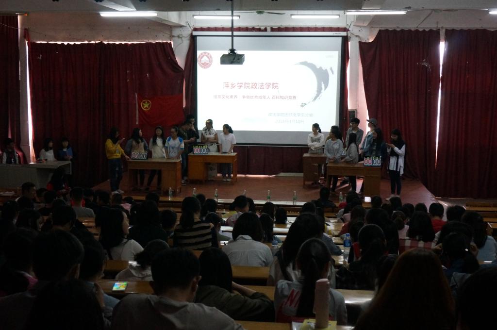 为了营造更浓厚的校园学习气氛、丰富学生的课余生活、积极引导大家关注社会、着眼于世界、拓宽学生的知识面,政法学院于4月10日中午12点20在跬步楼1115举行了“提高文化素养,争做优秀成年人”为主题的百科知识竞赛的决赛。出席知识竞赛的有政法学院党总之书记叶继林、党总支副书记江惺悛,团总支书记罗燕妮,辅导员阳水根。本次活动面向政法学院全体学生,由17思政班廖妍婷担任主持。