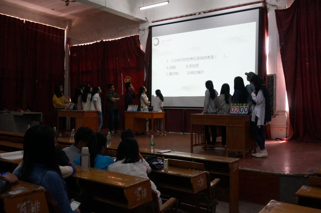 在第一轮环节——必答题中,选手们对答如流,充分展示了丰富的百科知识储备。紧接着第二轮的抢答题环节中,4组选手同学的竞争异常激烈,在主持人规定的时间内,12位同学都在争先恐后的抢答,可谓是比赛的高潮。第三环节的风险题中 , 选手们思维敏捷,沉着应对,唯恐一不小心,失误扣分。整轮比赛现场气氛活跃,选手斗志昂扬,观众喝彩鼓掌,工作人员紧张计分。经过半个小时的激烈角逐,彭钰、袁芳芳、邓雨雨3位同学所在小组,脱颖而出摘得桂冠。