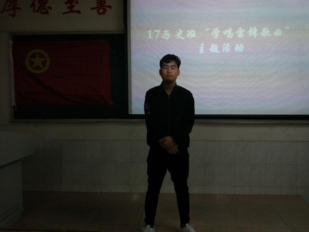 3月21日晚,17历史班在跬步楼1111教室召开“学雷锋歌曲”主题班会,本次班会有文艺委员王铭涛主持。同学们准备了自己喜欢或熟悉的歌曲,并挖掘出红歌背后的故事,在唱歌钱加上绘声绘色的故事讲述,把同学们感染后再唱,深深打动了在座的师生。最后,在大家的合唱中结束了本次班会。