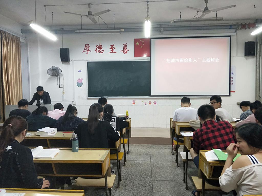 2018年4月2日,为了响应学校卫生大扫除的号召,弘扬雷锋精神,我院17法律事务班的同学们,在跬步楼1108教室开展了“把清洁留给别人”的主题班会。本次活动旨在把学习雷锋精神落实到实际行动中,通过对校园的打扫活动,让同学们更好地学习雷锋精神,把雷锋精神更好地传承下去。