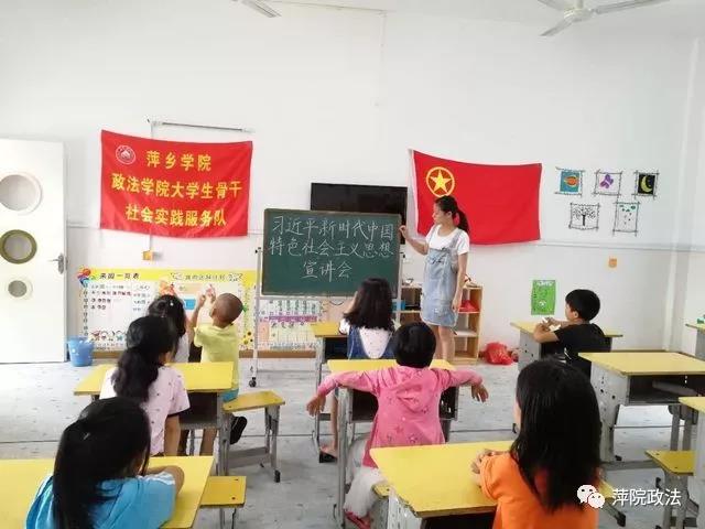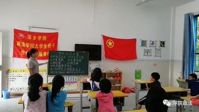 支教方面,课程内容为体育课、习近平新时代中国特色社会主义思想宣讲会和红歌教唱。体育课上,老师组织了小朋友们玩红绿灯,报团,抢凳子,正话反说,脑筋急转弯等游戏,课余时间还给女孩们带来了芭蕾舞教学。下午,老师先教小朋友们学习习近平新时代中国特色社会主义思想,然后进行了《团结就是力量》和《打靶归来》这两首红歌的教唱,课堂气氛十分活跃。