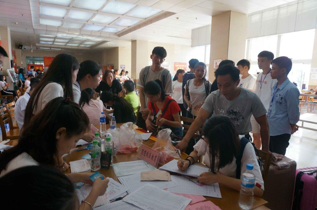 参与迎新的工作人员不厌其烦地回答着新生、家长他们提出的各种问题,让他们对学校有更快更好的认识,通过迎新工作人员的细心讲解,新生和家长们脸上都洋溢着幸福快乐的笑容。