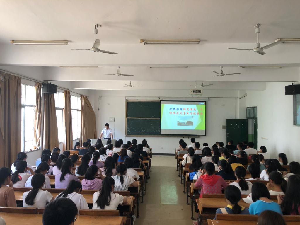 2018年9月11日上午,在英华楼3106教室,政法学院召开了2018级新生“转变角色、尽快适应大学生活”报告会,会议由辅导员陈尧嘉主持。