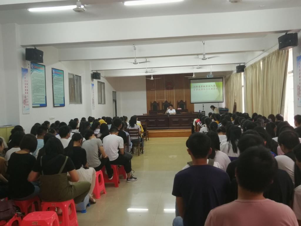 2018年9月11日下午2点,政法学院全体2018级同学在模拟法庭开展了《江西省学校学生人身伤害事故预防及处理条例》专题学习会,会议由辅导员陈尧嘉老师主持。