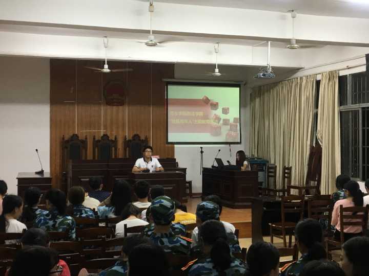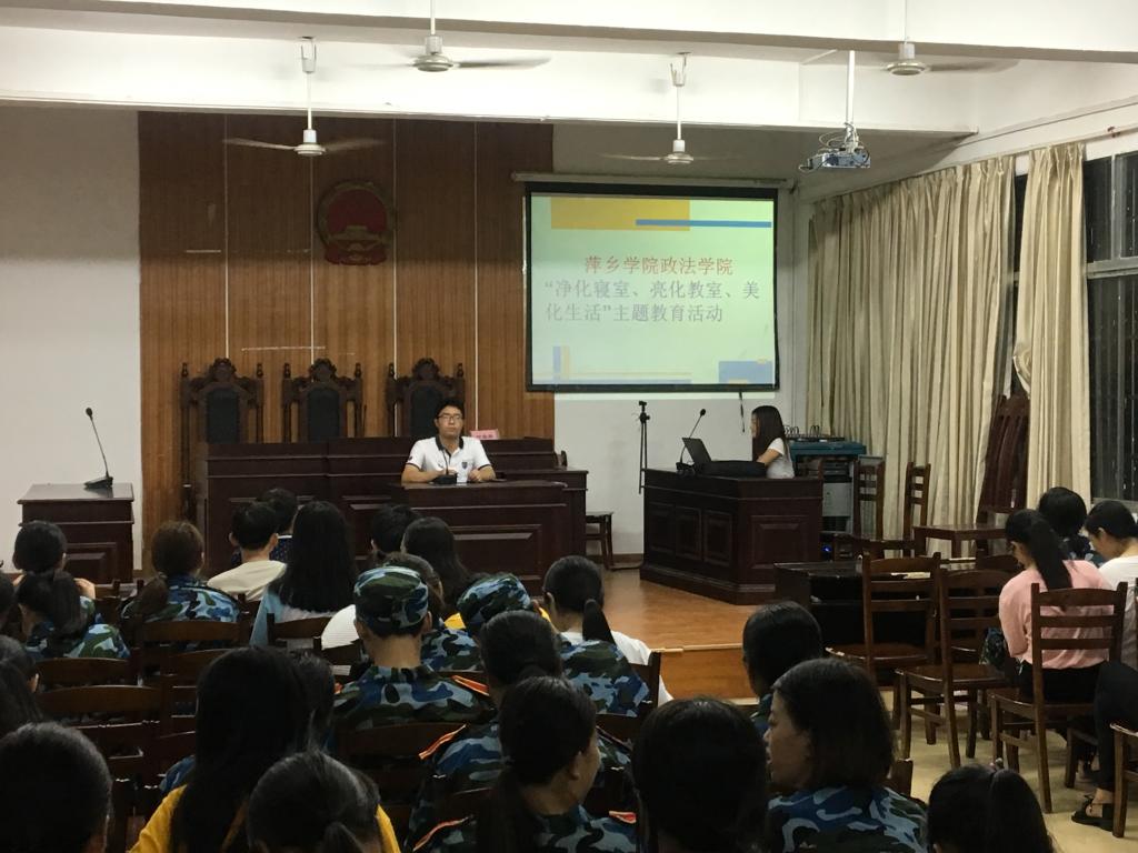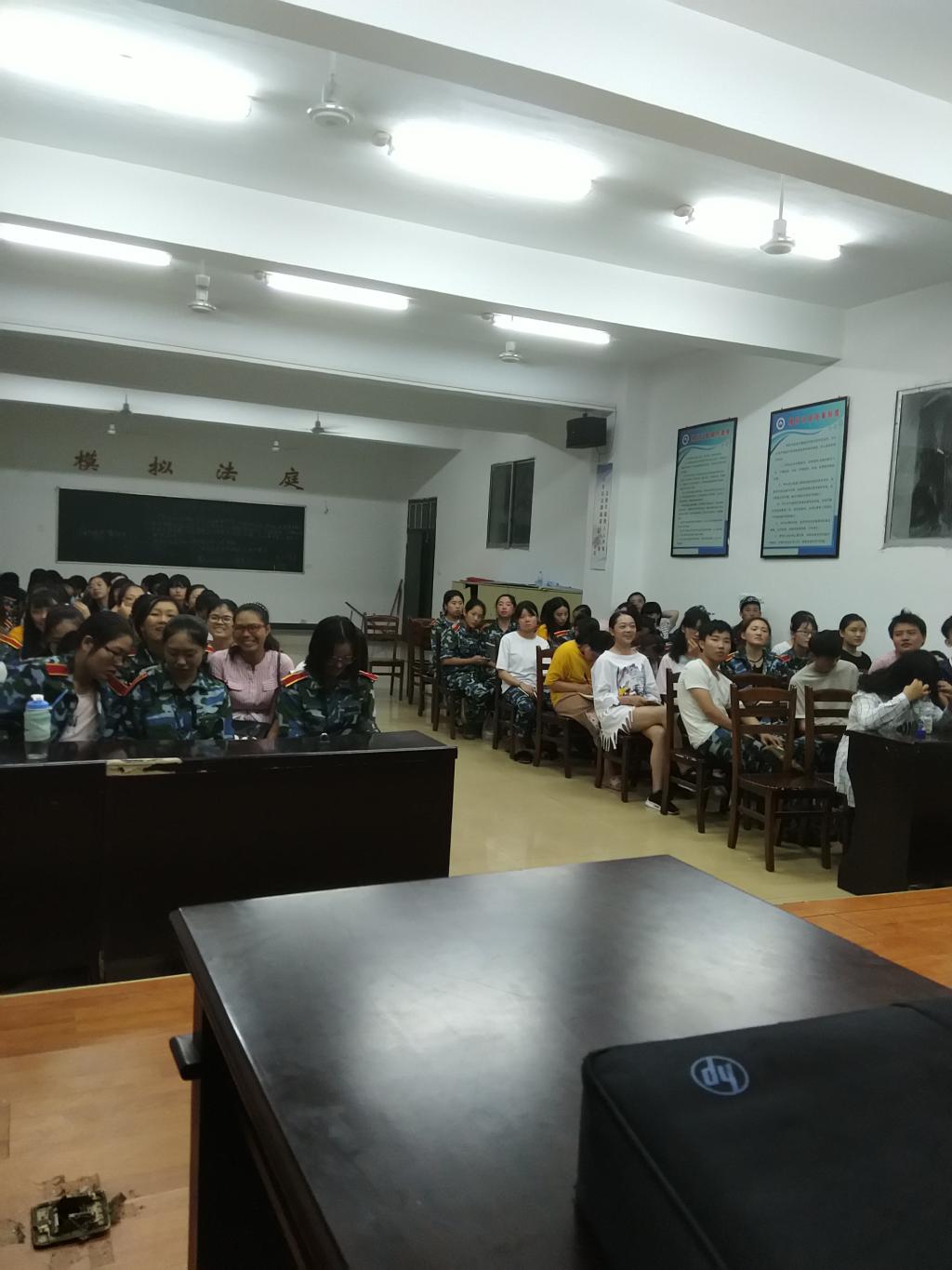 2018年9月13日晚上,政法学院在模拟法庭召开“我是成年人”和“净化寝室、亮化寝室、美化生活”主题教育活动,会议由辅导员陈尧嘉主持。