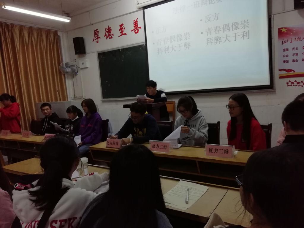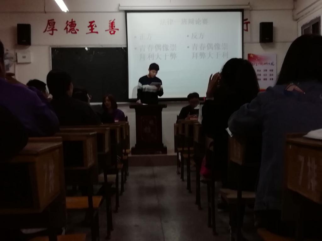 此次辩论赛第一场是青春偶像崇拜利弊问题,正方认为崇拜青春偶像利大于弊并进行了深刻辩论,他们认为崇拜青春偶像能够为自己树立良好的榜样,虚心向偶像学习也能够让人更好成长。虽然正方言之凿凿,但是反方也是铿锵有词,认为崇拜青春偶像浪费时间、影响学习生活。双方你来我往互不相让,整个辩论会场变得活跃起来。第二场是流动人口增加与城市发展之间的问题,正方认为流动人口的增加能够促进城市发展,为城市建设提供有力支撑,而反方也不落后,坚持认为城市流动人口的增加会给城市生活生产等各方面带来巨大压力,增加就业难度,辩论双方就在这你我互不相让的氛围中进行着辩论。辩论期间双方各自都慷慨激昂,振振有词,为本次辩论赛顺利的进行提供了良好的氛围。最后王静和胡伟分别为辩论赛做了点评,让辩手们了解到自身的优点与不足,同时也给了辩手们很多有益的意见与方法,整场辩论赛变得有序圆满。