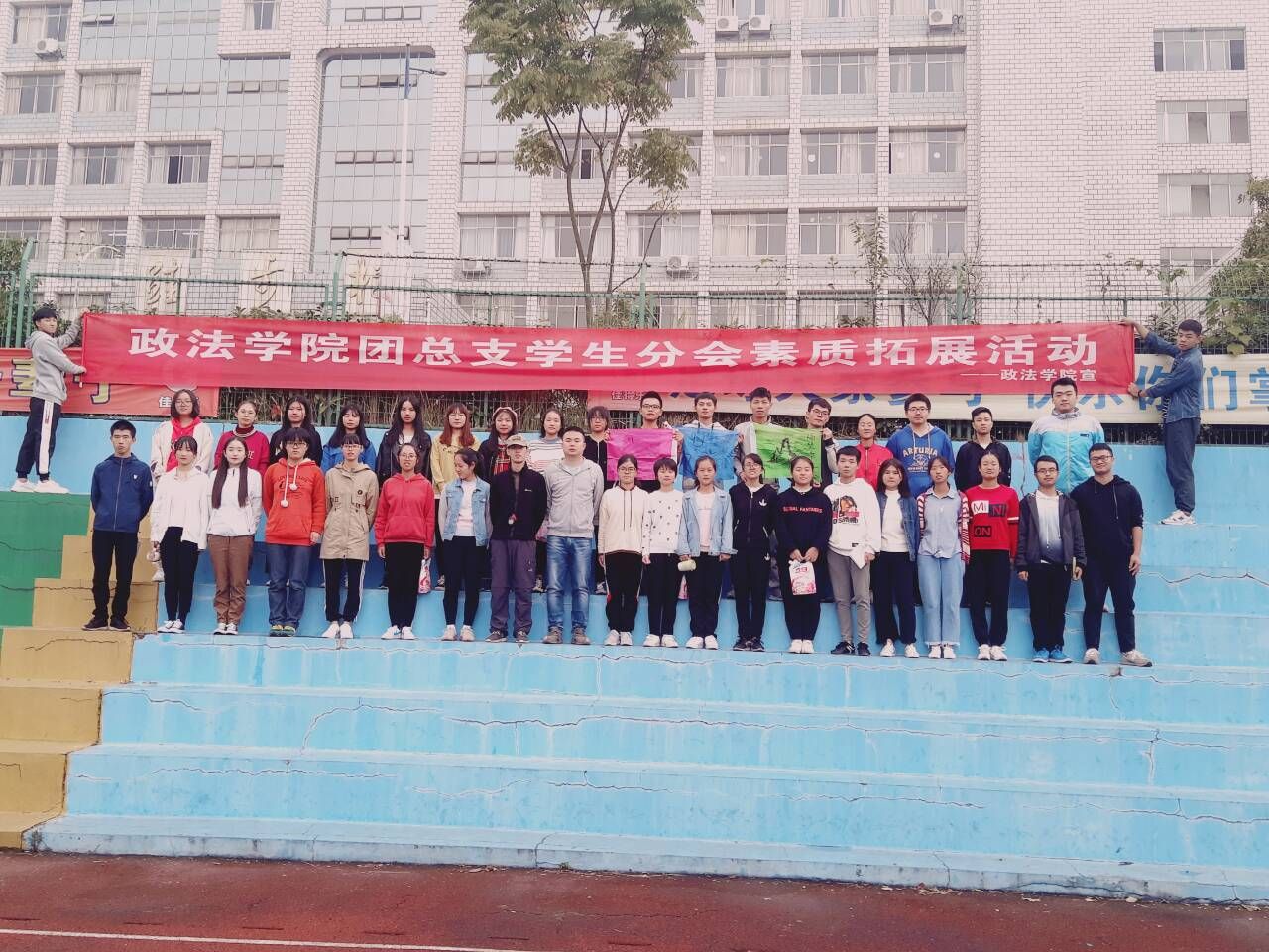 为加强学生分会成员之间的凝聚力,增进学生分会成员之间的感情,丰富大家的课余文化生活,并使政法学院团总支分会成员们更加团结,更加和谐相处,10月20日上午,在党总支副书记江惺俊老师和素质拓展活动的领队陈林辉老师的带领下,政法学院团总支学生分会的全体人员先后在校风雨篮球场和校田径场进行了素质拓展活动。