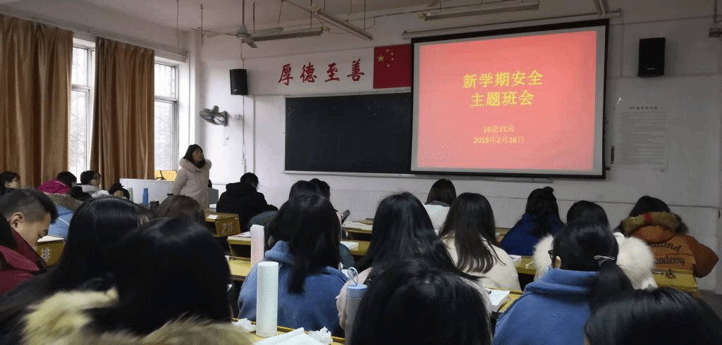 新学期新开始,带着新的一年最好的祝愿,2月25日晚,政法学院16思政班在跬步楼1106召开了新学期安全主题班会,此次班会由16思政班班主任乔兰老师主持。16思政班全体成员参加了此次会议。