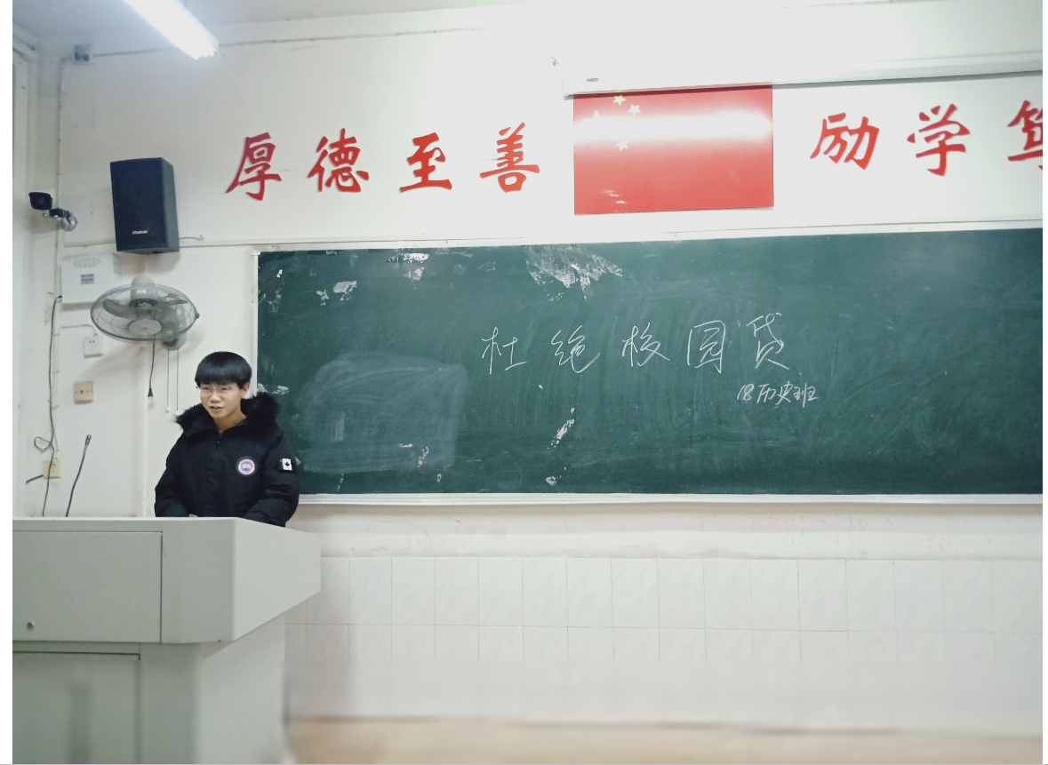 为认清非法校园贷,树立健康金钱观,18历史班于2019年3月3日在跬步楼1103开展“杜绝校园贷”主题班会。班会由韩秋飞叶主持,18历史班全体同学参加。
