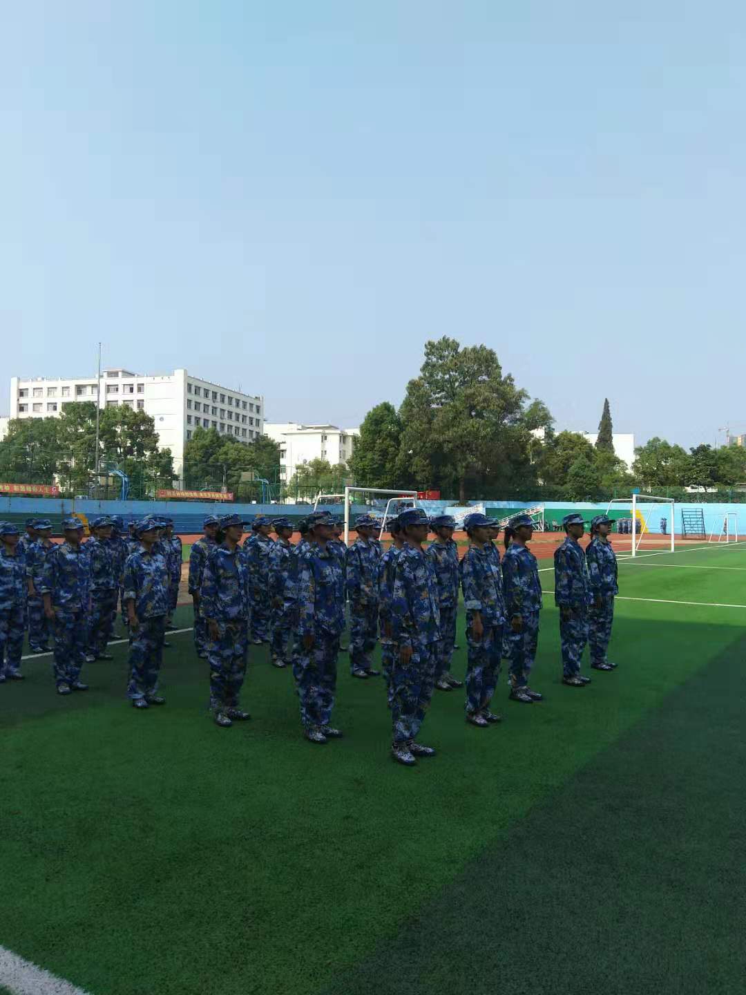 “顽强训练、克服困难,掉肉不掉队、流汗不流泪!”在开训仪式上,一同学们个个精神抖擞,斗志昂扬,一句句口号铿锵有力,声震云天。开训仪式结束后,紧张的军训拉开序幕。