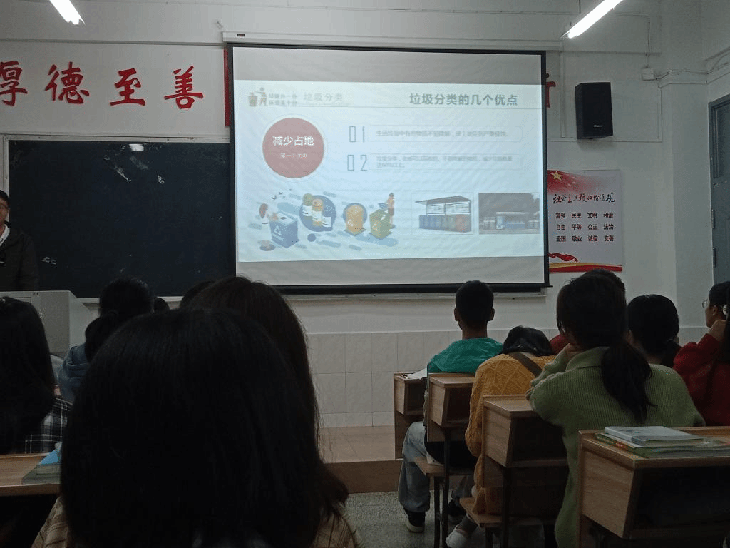 为普及学生的垃圾分类知识,培养同学们垃圾分类的好习惯,为改善生活环境作努力,为绿色可持续发展作贡献。2019年10月17日上午,19思政班全体同学于跬步楼1111教室,召开了文明创建及生活垃圾分类的主题宣传班会。此次活动由辅导员陈尧嘉老师主持,此次班会,同学们积极畅言,会上氛围融洽。