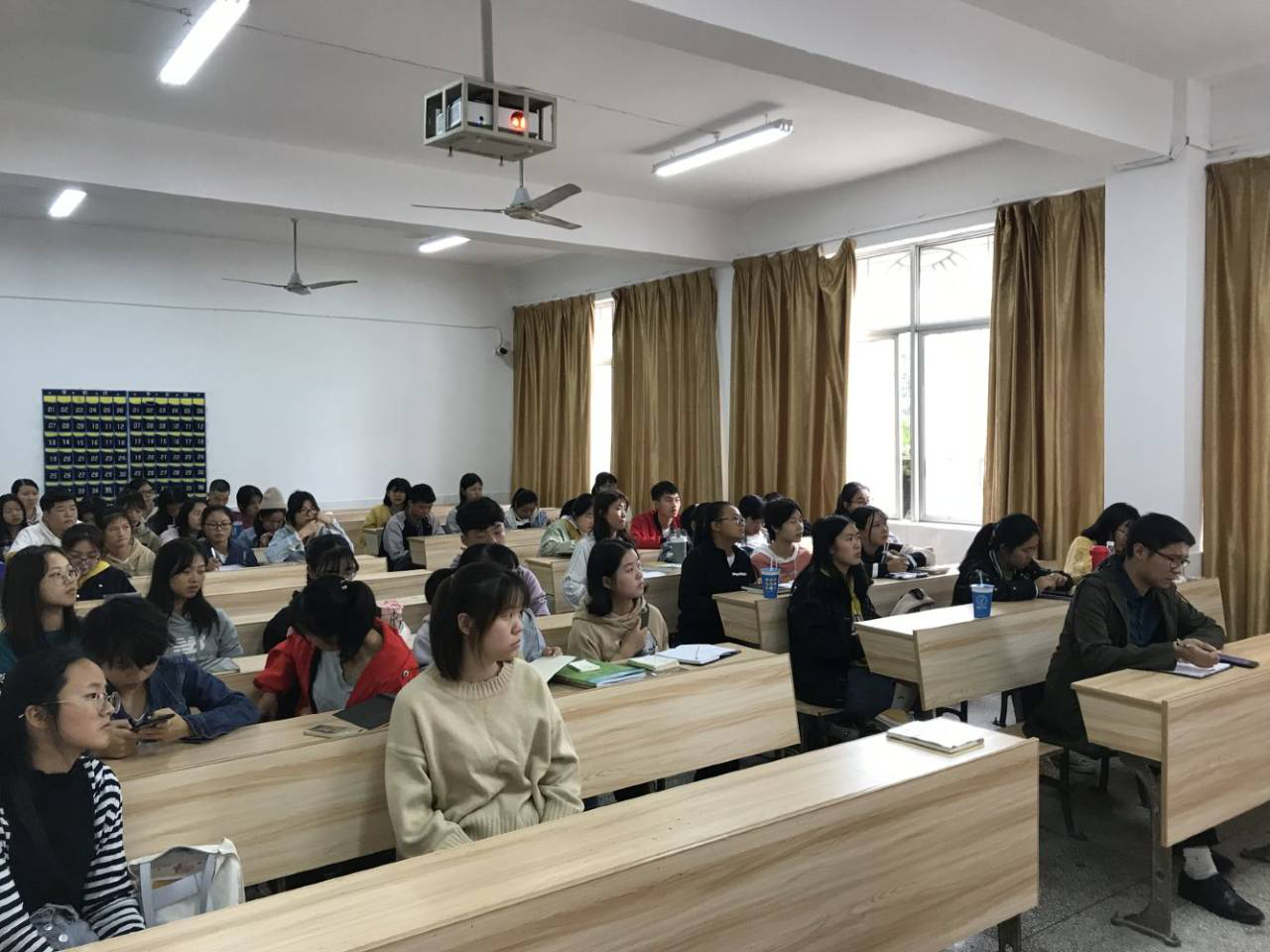 首先廖妍婷主席提到教室、寝室的卫生问题,要求同学不要带早餐进教室,离开教室时要将垃圾随身带走。对于寝室卫生宿管部要在校宿管会抽查前30分钟进行检查。接着廖主席提醒各部门及时为12月4日的法治宣传周做准备工作;她还鼓励参加学校举办的关于“垃圾分类减量从我做起,文明校园因你美丽”的演讲比赛。最后廖主席还告诉同学们要及时到第二课堂签到,让自己获得足够学分。之后团总支书记陈尧嘉再次强调卫生问题,他希望大家相互理解和配合,为本科合格评估出力。