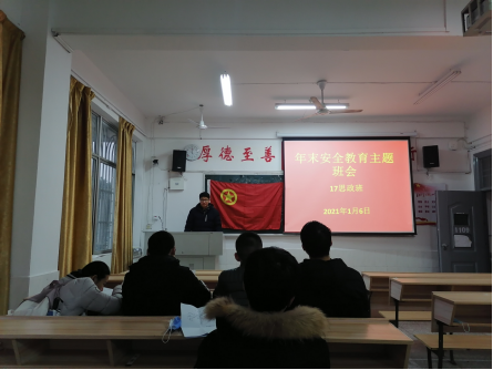 为提高同学们的假期安全意识,增强自我保护能力,以度过一个安全且有意义的寒假。2021年1月6日,17思政班全体同学于跬步楼1109教室召开了年末安全教育主题班会。17思政班全体同学参与本次班会,班主任陈尧嘉老师是本次活动的主持人。