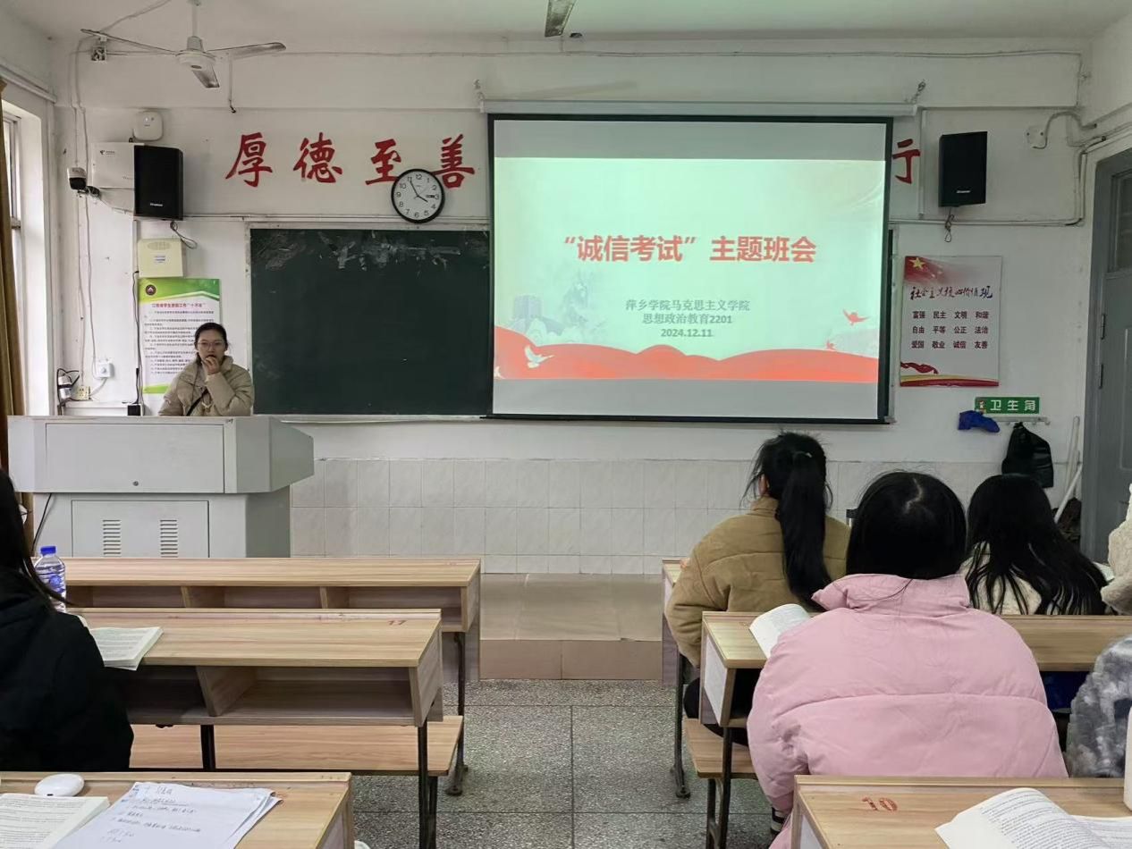 为引导学生树立正确的考试观念,严肃考风考纪,营造诚信考试的良好氛围。12月11日,22思政班于跬步楼1109召开了诚信考试主题班会。此次班会由辅导员段杉主持,22思政班全班同学共同参与。