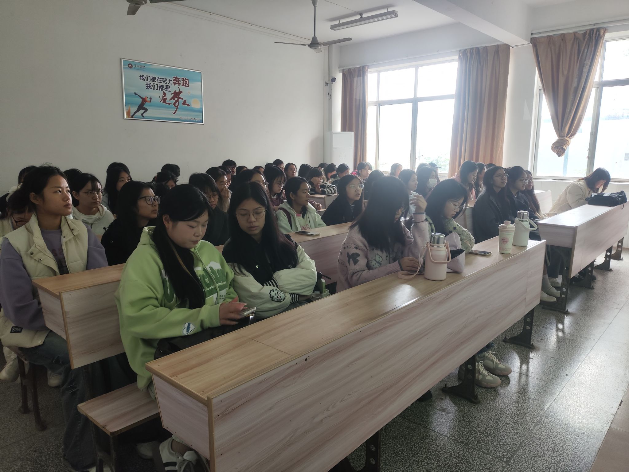 班会伊始,彭老师详细介绍了本次班会的背景与目的。她指出,学风是学校精神面貌和学生学习态度的重要体现,是提高教育教学质量、实现人才培养目标的重要保障。当前,学校正处于迎接本科教育教学审核评估的关键时期,每一位同学都应积极参与到学风建设中来,以实际行动为审核评估贡献力量。本次班会,旨在进一步强化同学们的学风意识,明确审核评估的重要意义,共同营造良好的学习氛围。